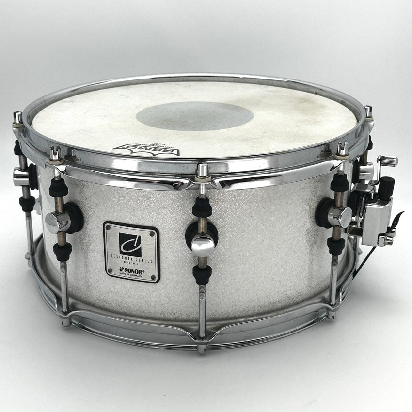 Used Sonor Designer Birch Snare Drum 13x6 White Sparkle - Very Good