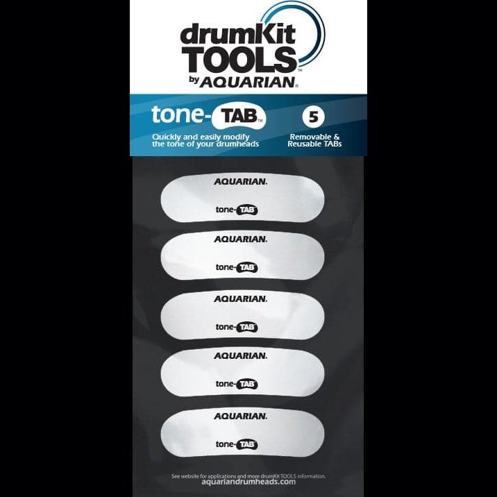 Both the toneTABs and the duraDOTs are DRUM TONE MODIFIERS. They are made of a 10mil plastic material with a reusable adhesive backing. Frequencies are adjusted when adding tone modifiers. Their practical design allows for placement anywhere on the head. Both the TAB and the DOT can be played on without interfering with the movement of the drumstick. Adjusting the ring or decay of the drum can easily be achieved in real time - even changed in the same song! Aquarian toneTABs and duraDOTs don't leave a sticky residue and can be used over and over again
