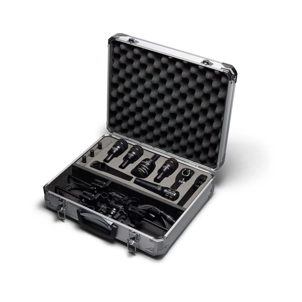 Everything is conveniently packaged in a foam-lined aluminum carrying case for safekeeping when the microphones are not in use.