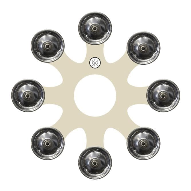The Big Fat Octopus has 8 sets of tambourine jingles to give any hi hat or cymbal a sizzle/trashy sound. The BFO is make from super light weight plastic, so you'll hear those tambourine jingles loud and clear. Use the Big Fat Octopus jingles up for medium sizzle or jingles down for maximum sizzle!