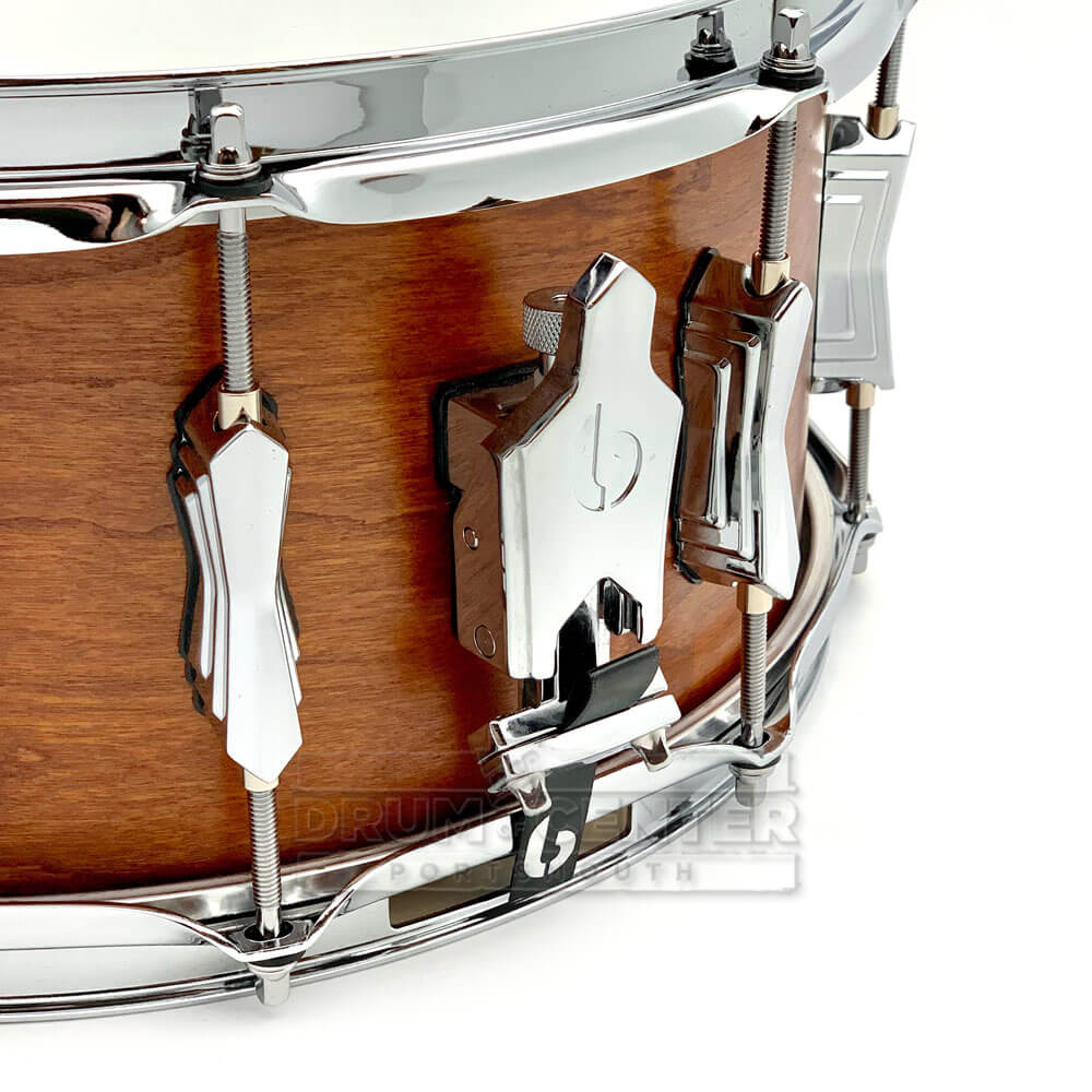 While its 6.5" depth and cherry inner and outer veneers accentuate the warmth of its response, the key ingredient is its kiln-dried ochroma core. This surprisingly light hardwood has a micro-pore grain structure that filters out higher frequencies, so bigger, warmer and funky sounds are achieved without de-tuning. You can now crank up your batter head to a responsive rebound rate for you sticking and still play big and funky back beats.