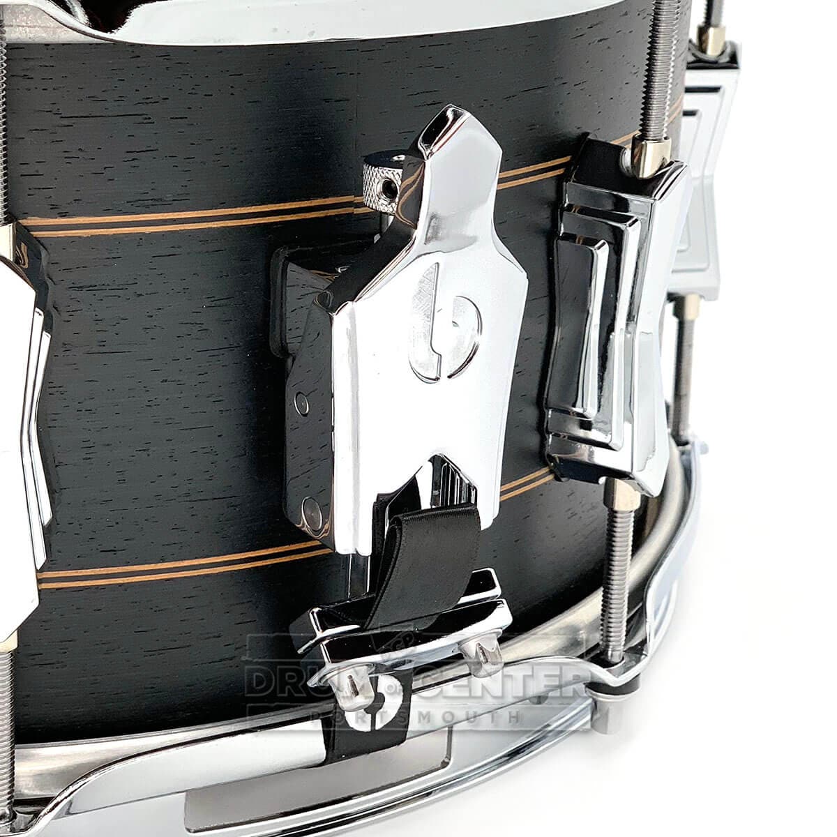 The Merlin’s 20-ply shell consists of alternating vertical and horizontal veneers of two sonically superior hardwoods – maple for focused warmth, and birch for direct brightness. The shell is then expertly finished with a black tulip outer veneer inlaid with a tasty double pinstripe of maple.