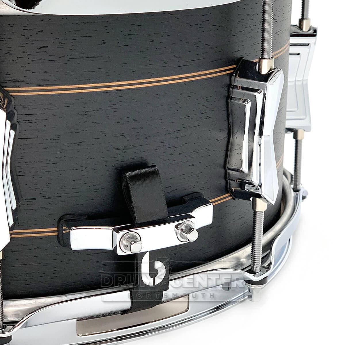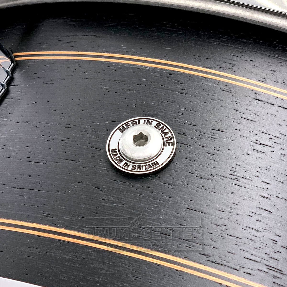 The Merlin’s 20-ply shell consists of alternating vertical and horizontal veneers of two sonically superior hardwoods – maple for focused warmth, and birch for direct brightness. The shell is then expertly finished with a black tulip outer veneer inlaid with a tasty double pinstripe of maple.