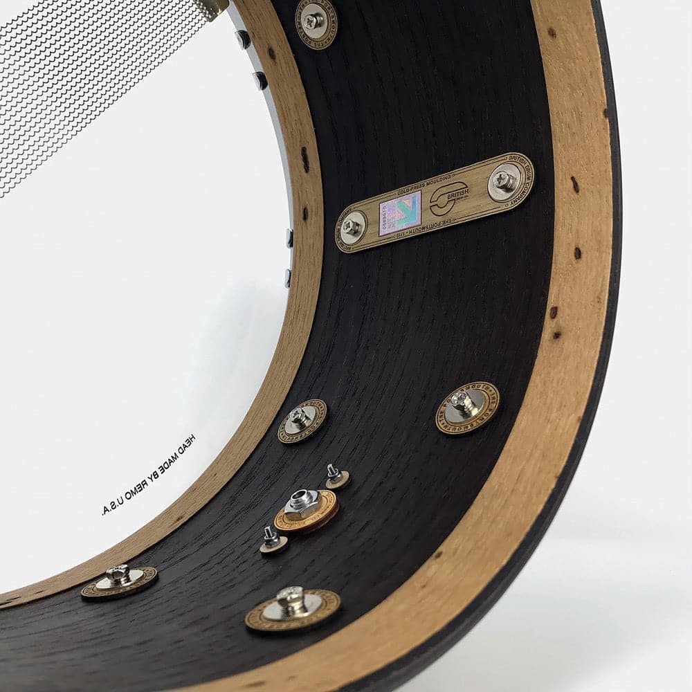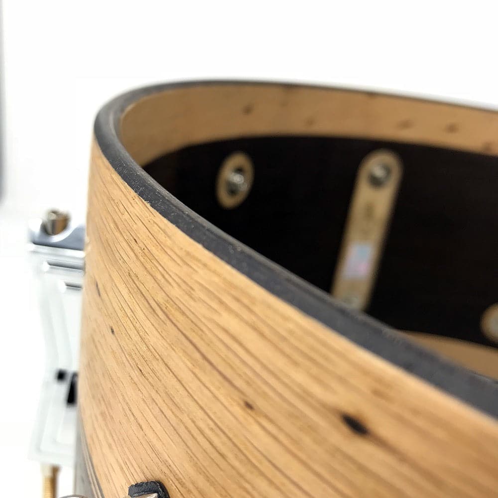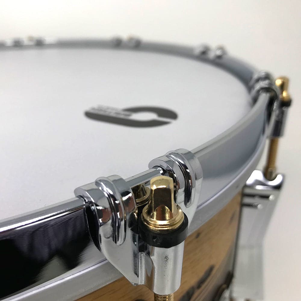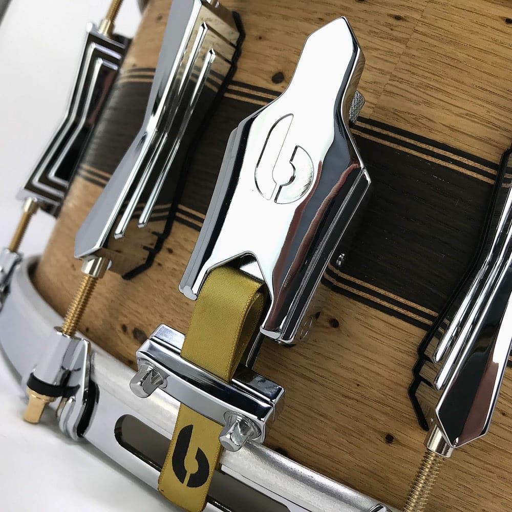 Handcrafted in the UK, the Portsmouth is a 14” x 7”, 10-ply shell with 45° round-over bearing edges, constructed using our unique cold press moulding process to create a shell with exceptional structural and tonal integrity. The Portsmouth is a sensational drum emblazoned with a wealth of desirable features including vintage style mini-claws, gold- plated tension rods, a bespoke badge identifying the edition number and beautifully crafted, hand-cut pinstripes of the English Fumed Brown Oak and English Pipped Oak veneers, which also feature on the contrasting reinforcement rings.
