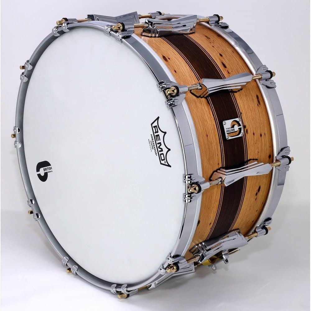 The Portsmouth Limited Edition snare drum is something very special indeed. Created to celebrate the 10th anniversary of the launch of the Drum Center of Portsmouth, this spectacular snare drum is inspired by the UK city of Portsmouth. This is the home of the British Navy’s Royal Marines, who have selected the British Drum Co. to build their new marching drums. Crafted from English Fumed Brown Oak, these drums and their home inspired us to create a namesake for our friends over in New Hampshire.