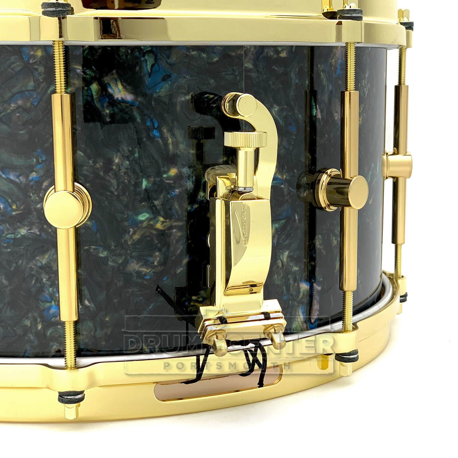 Finished in a unique abalone wrap with brass hardware, this Birch Series snare by Canopus is a real sleeper – it's one of those snare drums that will do it all! The shell is 100% birch for a rich tone and solid pop. Eight premium, solid brass, single-point lugs allow for a good balance of tone and tunability. It's responsive and thick at lower tunings, and it slays when it's cranked up. Die cast hoops make for cracking rim shots and help control overtones. Every serious player should have one of these in their collection.