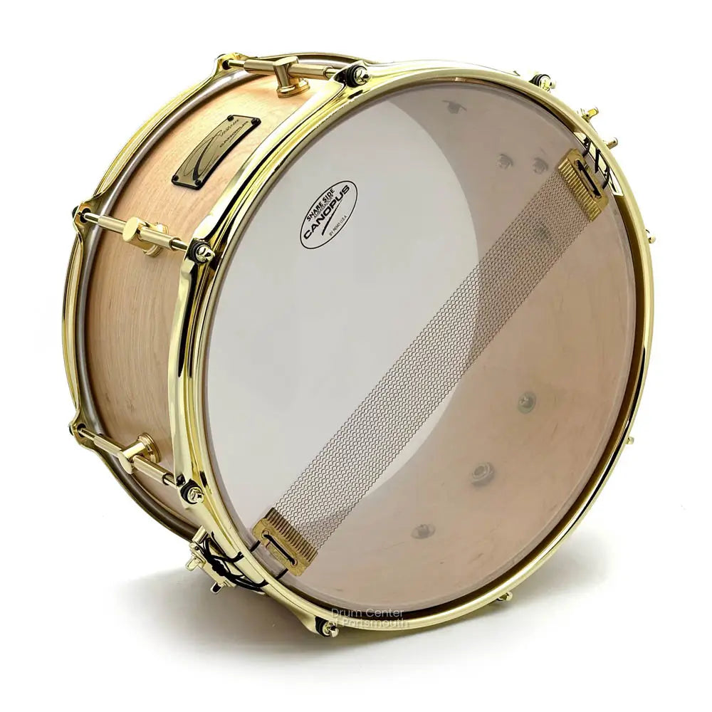 Sporting a classic Natural Oil finish, "The Maple" by Canopus is a staff favorite here at Drum Center of Portsmouth. This is one of those snare drums that will do it all. The 8-ply shell configuration is optimized for maximum projection. 8 premium, brass-plated single point lugs give it just the right balance of openness and tunability. It's responsive and thick at lower tunings, and it screams when it's cranked up. Canopus die cast hoops tame the overtones just enough. This is the ultimate instrument for the serious drummer!