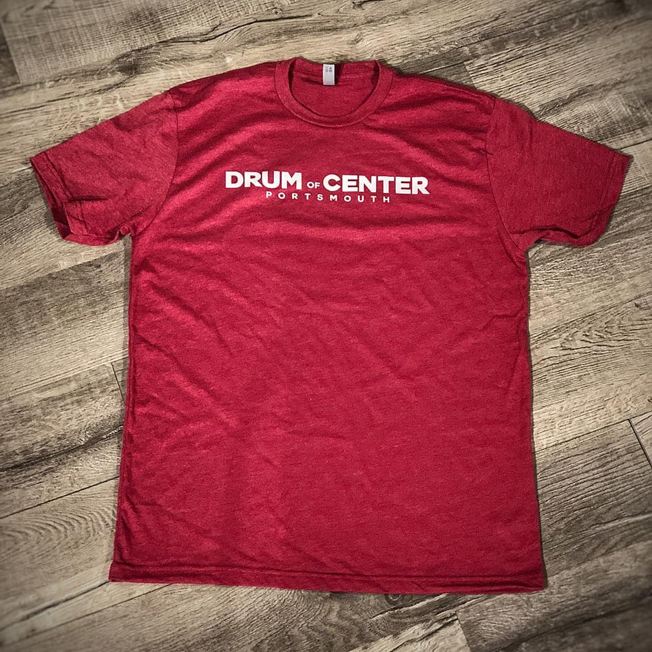 Support your favorite drum shop with style! New designs for a fresh look! Gray Drum Center of Portsmouth logo on cardinal red Next Level cotton/polyester blend T-shirt