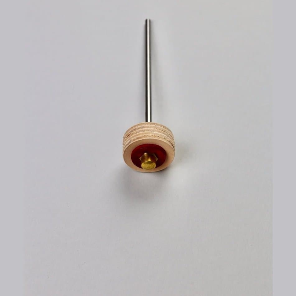 Our hardest beater is constructed of 5 discs of thick, firm leather tightly stacked together on a brass post. This beater is articulate and punchy, but with a warmth and depth to the sound not found in conventional hard felt beaters. Great general purpose beater.