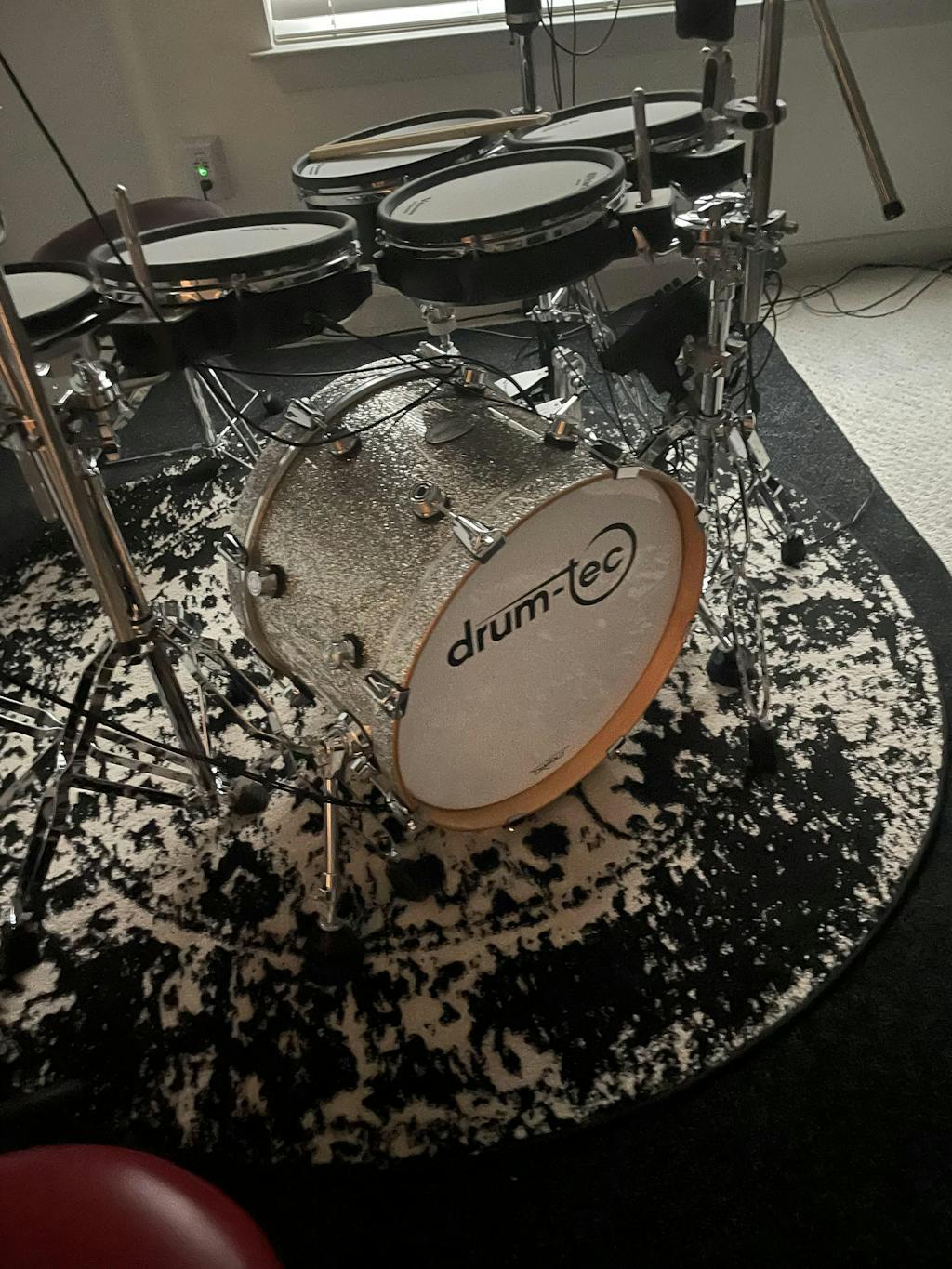 The bass drum is also equipped with a design mesh head as the batter head. On the bass drum mesh head, you'll find a pre-mounted protection dot, providing additional durability, especially when using felt beaters.