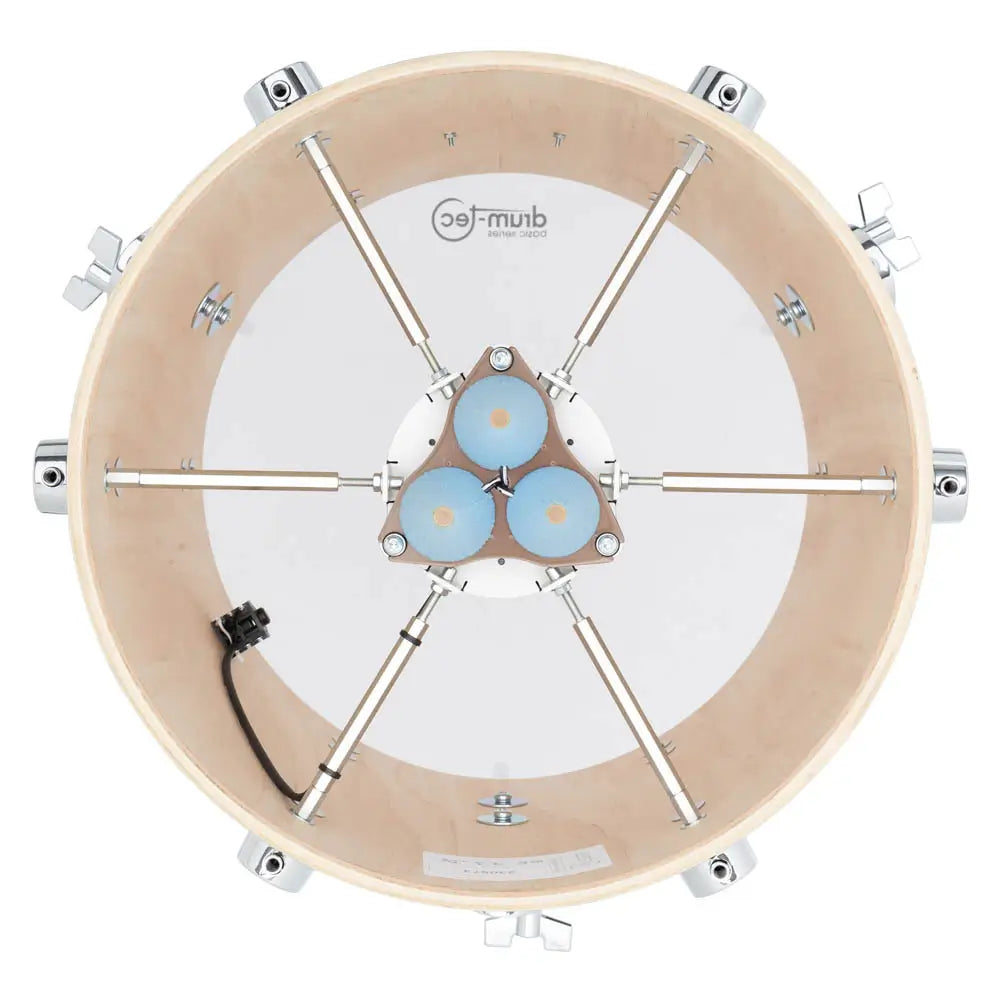 The three head sensors of the drum-tec diabolo 3 series are positioned in the center of the shell. Their arrangement and wiring eliminate the occurrence of a center hotspot. This means you can play without any concerns, without the need to maneuver around the hotspot. Focus entirely on your playing and unleash your full potential without limitations.
