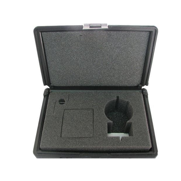 Heavy-duty, dedicated plastic hard case. Double walled construction with commercial grade molded mechanical hinges and a Patented unbreakable latch. Rugged fold down handle makes the case easy to carry. Multiple layers of dense protective foam for both top and bottom protection of your DrumDial. Precision die cut custom foam interior to hold your DrumDial, edge gauge and glass calibration standard. Edge gauge and quarter-inch thick glass calibration standard included with each case.