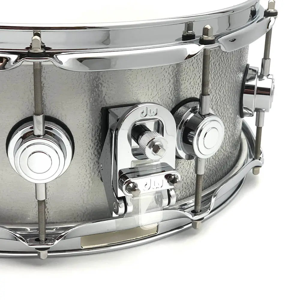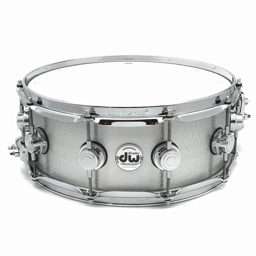 This 5.5x14 DW Collectors Cast Aluminum Snare is very different than traditional, thin-shelled aluminum drums you may be accustomed to. This bad boy is rolled from heavy-gauge aluminum with an integrated reinforcement hoop. The sound is loud, bright, yet bottom heavy. Finished in a unique wrinkle coating, this thick aluminum lacks a lot of the ping and metallic quality associated with brass and steel drums. If you're looking for powerful projection with solid articulation, give this DW Collectors Cast Aluminum a whirl.