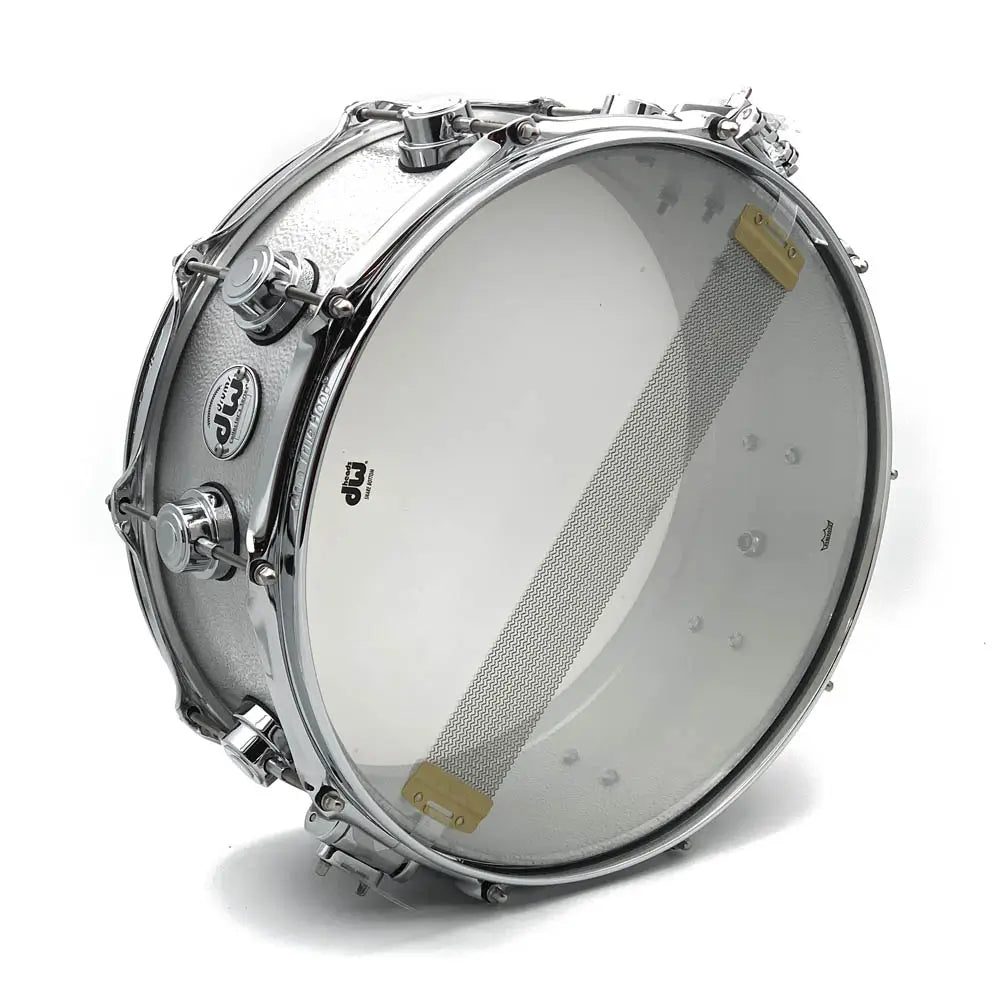 This 5.5x14 DW Collectors Cast Aluminum Snare is very different than traditional, thin-shelled aluminum drums you may be accustomed to. This bad boy is rolled from heavy-gauge aluminum with an integrated reinforcement hoop. The sound is loud, bright, yet bottom heavy. Finished in a unique wrinkle coating, this thick aluminum lacks a lot of the ping and metallic quality associated with brass and steel drums. If you're looking for powerful projection with solid articulation, give this DW Collectors Cast Aluminum a whirl.