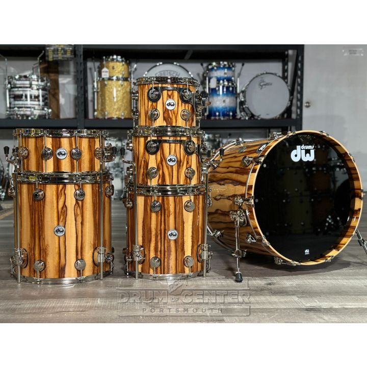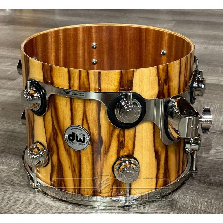 We've unboxed many "exotic" drum sets over the years. Few have literally quickened our pulse as this DW Cherry / Mahogany in stunning Chechen outer veneer! The figuring on this particular veneer is so mesmerizing, it's hard to believe that it exists naturally in the wild. The elegantly understated nickel-plated hardware adds yet another level of decadence to this heirloom quality instrument.