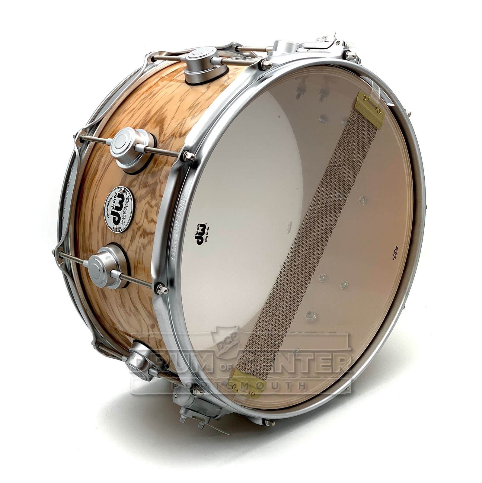 Collectors Series Maple snare drums are the standard from which all other DW snare drums are measured. This classy DW Collectors snare drum – finished in an Exotic Olive Ash Burl veneer – has been crafted from hand-selected North American Maple and is fitted with satin chrome hardware. This 9-ply VLT shell features 60-degree bearing edges for optimal resonance and attack. The lacquered interior is an amazing little detail that adds a touch of brightness to a snare with a full tonal spectrum and plenty of body. The Collectors Series maple is a workhorse wood snare drum that will fit any musical genre. Check it out at the Drum Center of Portsmouth!
