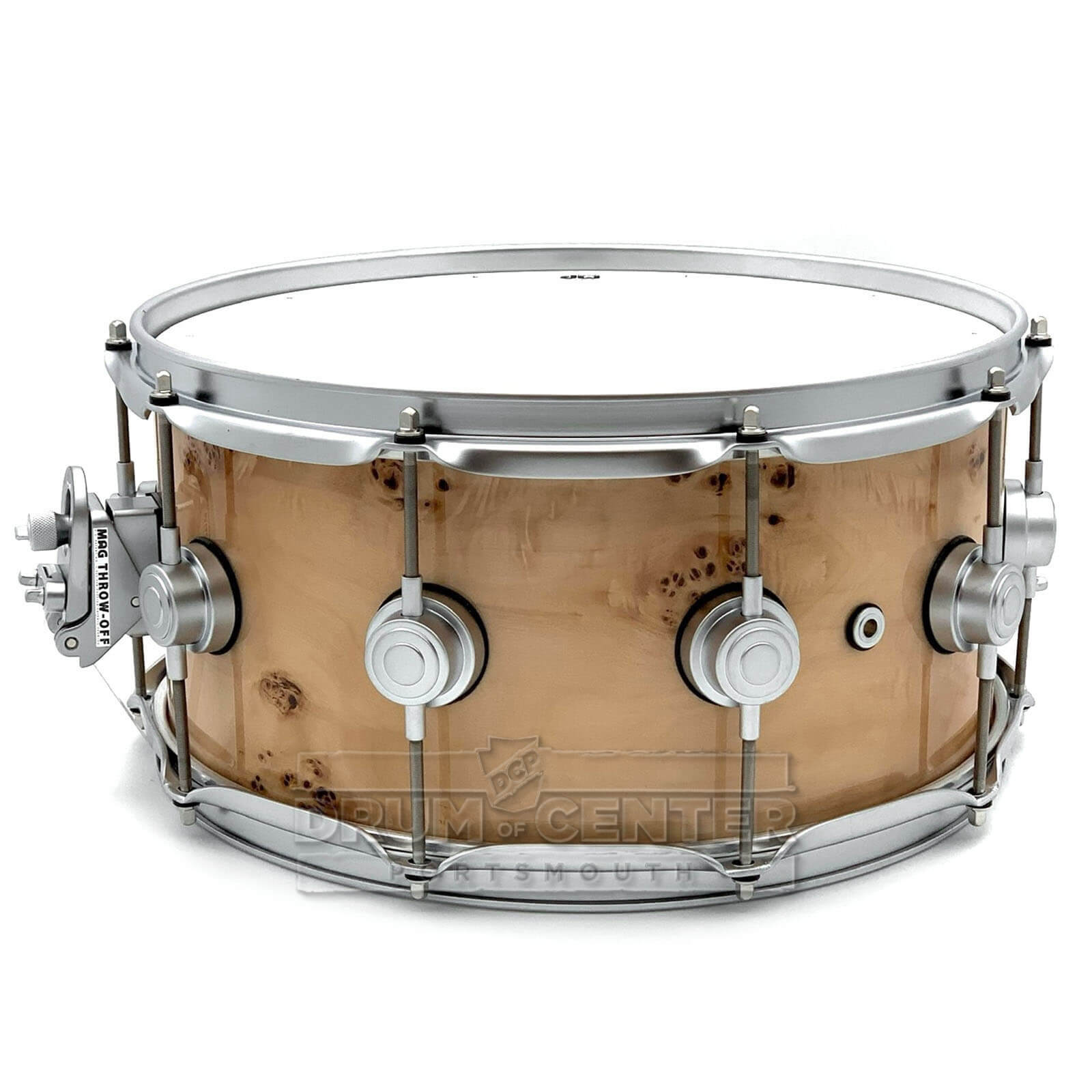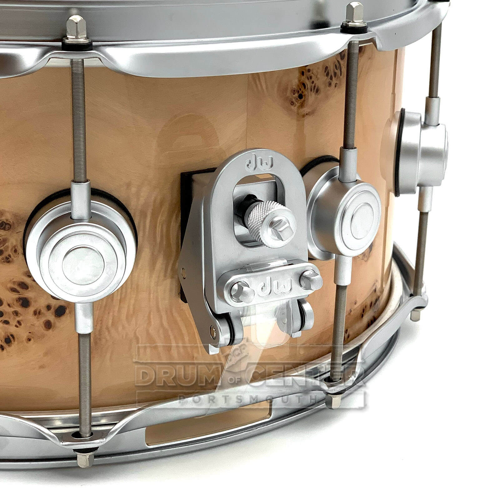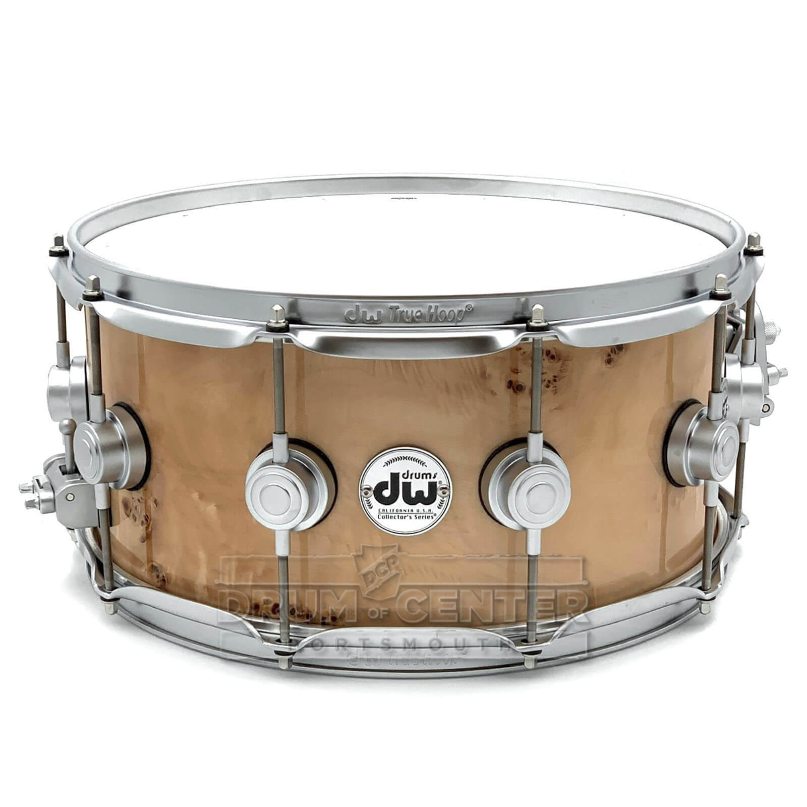 Collectors Series Maple snare drums are the standard from which all other DW snare drums are measured. This classy DW Collectors snare drum – finished in an Exotic Mapa Burl veneer – has been crafted from hand-selected North American Maple and is fitted with satin chrome hardware. This 9-ply VLT shell features John Good's new favorite 333 ply layup topped with 60-degree bearing edges for optimal resonance and attack. The lacquered interior is an amazing little detail that adds a touch of brightness to a snare with a full tonal spectrum and plenty of body. The Collectors Series maple is a workhorse wood snare drum that will fit any musical genre. Check it out at the Drum Center of Portsmouth!