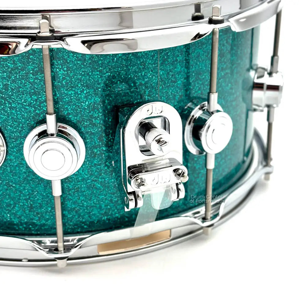 Collectors Series Maple snare drums are the standard from which all other DW snare drums are measured. This classy DW Collectors snare drum – finished in a Teal Glass FinishPly wrap – has been crafted from hand-selected North American Maple and is fitted with chrome hardware. This 9-ply VLT shell features John Good's new favorite 333 ply layup topped with 60-degree bearing edges for optimal resonance and attack. The lacquered interior is an amazing little detail that adds a touch of brightness to a snare with a full tonal spectrum and plenty of body. The Collectors Series maple is a workhorse wood snare drum that will fit any musical genre. Check it out at the Drum Center of Portsmouth!