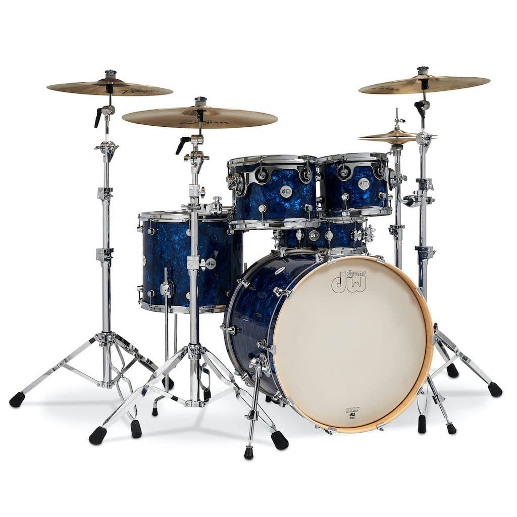 This DW Design 5pc Drum kit in gorgeous Piano Black is sure to turn heads at your next gig. Make no mistake, this is a DW kit. No detail overlooked, no corners cut. Every efficiency in their production process to meet this killer price point has no negative bearing on tone or sound. This DW kit will get noticed and most importantly, perform with DW quality. We are big fans of the low-mass mini-turret style lugs on this kit. Other professional level features include STM (Suspension Tom Mounts), True-Pitch Tuning, MAG throw-off, low-mass die cast claw hooks, and HVLT shell technology. Perfect sizes: 22x18, 10x8, 12x9, and a thumping 16x14 floor tom. This kit is a steal at this price. Snare Drum, Stands and Cymbals are Sold Separately.