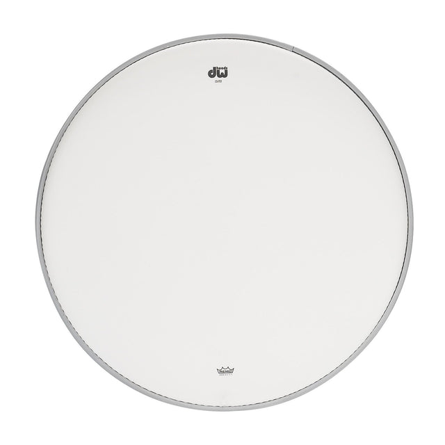 DW Coated White Heads by Remo USA are made using authentic Dupont single-ply S film and are painted with Remo's proprietary coating. These heads offer a dark, warm tone and enhanced resonance due to a crimped aluminum flesh hoop. DW Coated White heads come standard on both batter and resonant sides of all Classics and Jazz Series custom drums and are also standard on all DW Custom Shop Snare drums, featuring DW's numbered tuning sequence. Bass drums feature Remo's standard, glued-channel aluminum flesh hoop. Coated White bass drum heads can also be used as resonant logo heads.