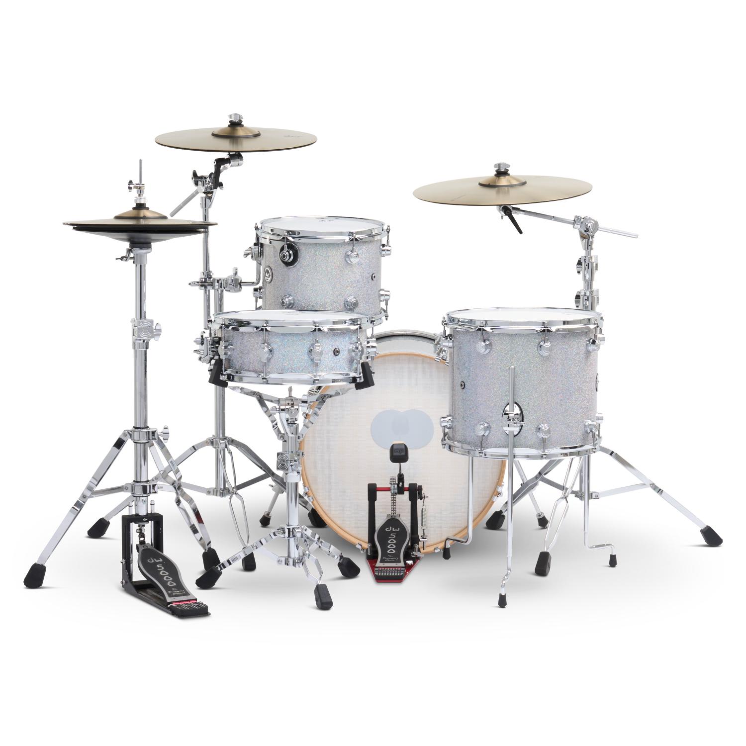 And don't forget about the cymbals and hardware. The kit also includes the DWe Cymbal Pack and the reliable DWCP5000PK4 hardware pack. The cymbals are built for traditional stands and connect wirelessly to the system, while the 5000 Series hardware brings DW's renowned durability and performance.