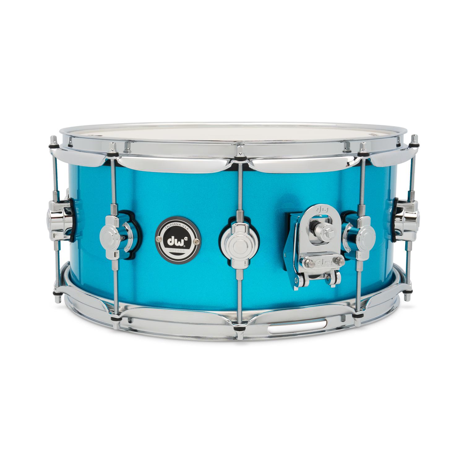 This DWe snare drum features a Laser Blue Metallic Lacquer Custom finish and measures 6.5x14". This snare drum also includes a license for DW Soundworks, mesh drum heads for electronic drumming, and acoustic heads & snare wires for rapid conversion to acoustic playing.