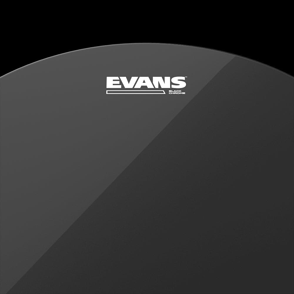 Evans Black Chrome drum heads are ideal for the Rock/Metal/Progressive drummer who hits hard, plays fast and desires a new, attractive aesthetic with a punchy tone. Featuring a two-ply construction with a ply of 7mil optically clear film over a 7.5mil black film, Evans Black Chrome provides strong durability combined with a sleek mirror-like appearance and a robust tone. The combination of opposing films (two different types and thicknesses) shortens sustain and provides an accentuated mid-to-low frequency response. Evans Level 360 technology is incorporated to extend the level playing surface of the drumhead, 360 degrees around the drum. The vertically enhanced collar design guarantees even contact with the critical bearing edge of the drum shell, resulting in: ease of tuning, extended pitch range and optimum quality of sound. Evans Level 360 technology resolves the age-old dilemma of traditional synthetic heads consistently not fitting the drum shell without using considerable force.