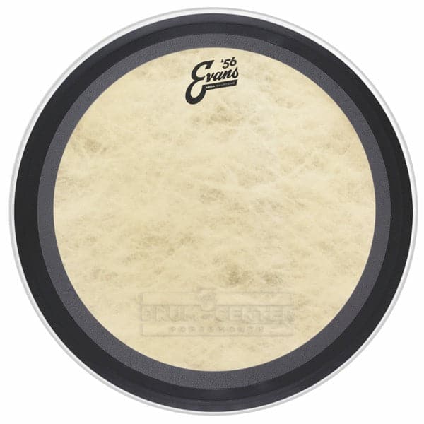 The Evans EMAD Calftone Bass Drum Head is constructed from a 12-mil single ply film with a special synthetic fiber top layer. Evans Calftones are designed to have the vintage look and sound of calfskin, with an added emphasis to the middle and low-end frequencies. The sound is warm, bright and articulate with reduced overtones, thanks in part to the synthetic coating. Since these calftone heads also sport the EMAD system, you'll get two different acoustic foam dampening rings that can be quickly mounted to the front of the drum head for ultimate control over sustain and resonance. The result is a short, punchy tone that is well suited for lower to medium volume playing. Get these amazing USA made bass drum heads in stock at the Drum Center of Portsmouth.
