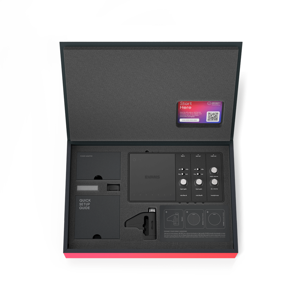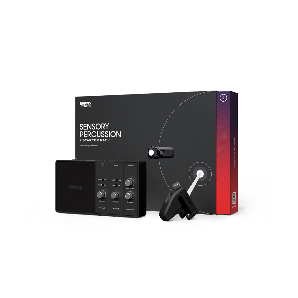 The EVANS Hybrid Sensory Percussion Starter Pack delivers the full power of Sensory Percussion in a streamlined, single-drum setup. It instantly transforms any acoustic or mesh-headed drum into a studio-grade electronic instrument without compromising the feel of playing an acoustic kit.