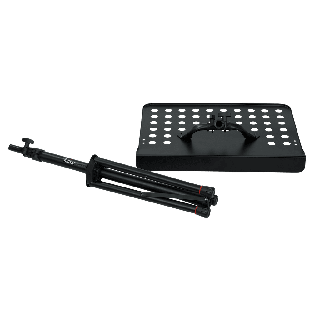 This Gator Frameworks Lightweight Sheet Music Stand features a compact, collapsible tripod base design and an easy-grip tension knob for height adjustment. Its perforated sheet music/portfolio tray measures 18.75" and can be adjusted to a maximum height of 45". For added safety, the stand includes removable red anti-trip safety rings on its feet.