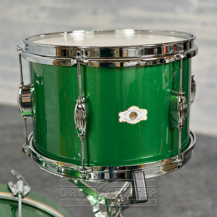 The revival of the George Way Drum Company by Ronn Dunnett in 2007 pays homage to one of America's most legendary drum manufacturers. These George Way Tuxedo Studio drums feature unique 4-ply, electronic-bonded maple/poplar shells with 2-ply reinforcement rings and 30 degree bearing edges. The thin, gloss finished shells produce a classically fat, warm tone with good sensitivity and a surprisingly deep fundamental pitch that will fit well in any musical situation. George Way hardware is top-notch and is finished with AAA chrome plating for unparalleled shine and durability. Rounding out these kits are the classic style streamline lugs; double-edged/double-flanged hoops; Waybest arch bass drum spurs; coated tom batter heads and clear, pre-muffled bass drum batter head.