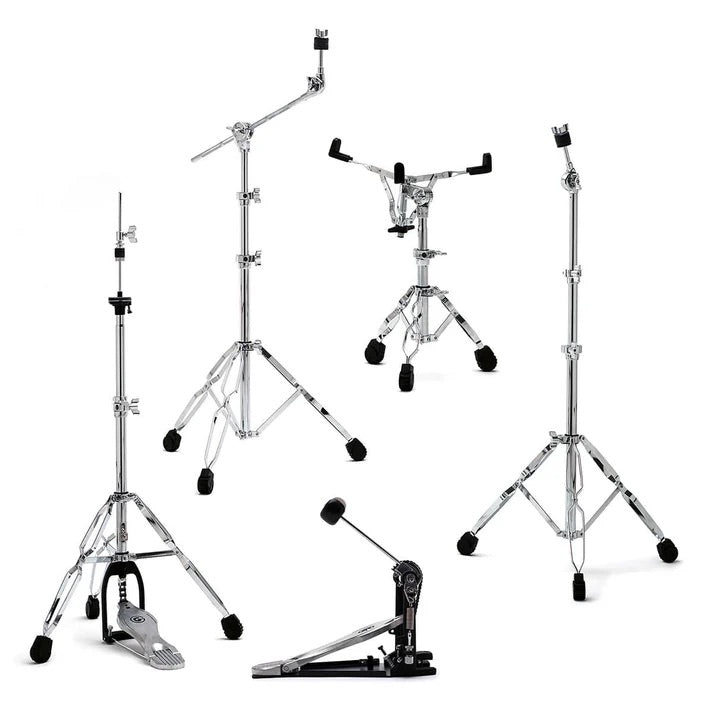 This five-piece hardware pack features double-braced stands for extra stability and small tube diameters for the drummer on the go.