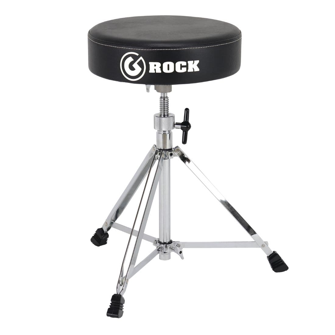 Rock Hardware is the little brother to Gibraltar and a value line with the stable features you expect. This doublebraced line is great for beginning players, or players who need an extra stand for practice at home. Outfit an entire drum set with Rock Hardware, and top it off with a comfortable, solid throne for those long playing sessions. The Rock round throne was made to last and offers a comfy foundation for those long playing sessions. This doublebraced base is fitted with a spindle height adjustment and locking T handle. Top it off with a cushy round top that is covered in black vinyl and white stitching. Features include Spindle height adjustment with locking T handle Comfy black vinyl covered seat top with white stitching and logo Top 13 inch. diameter, 3.5 inch. thick Height range 20 inch. to 26 inch. seat height, collapsed 18 inch. (no seat)