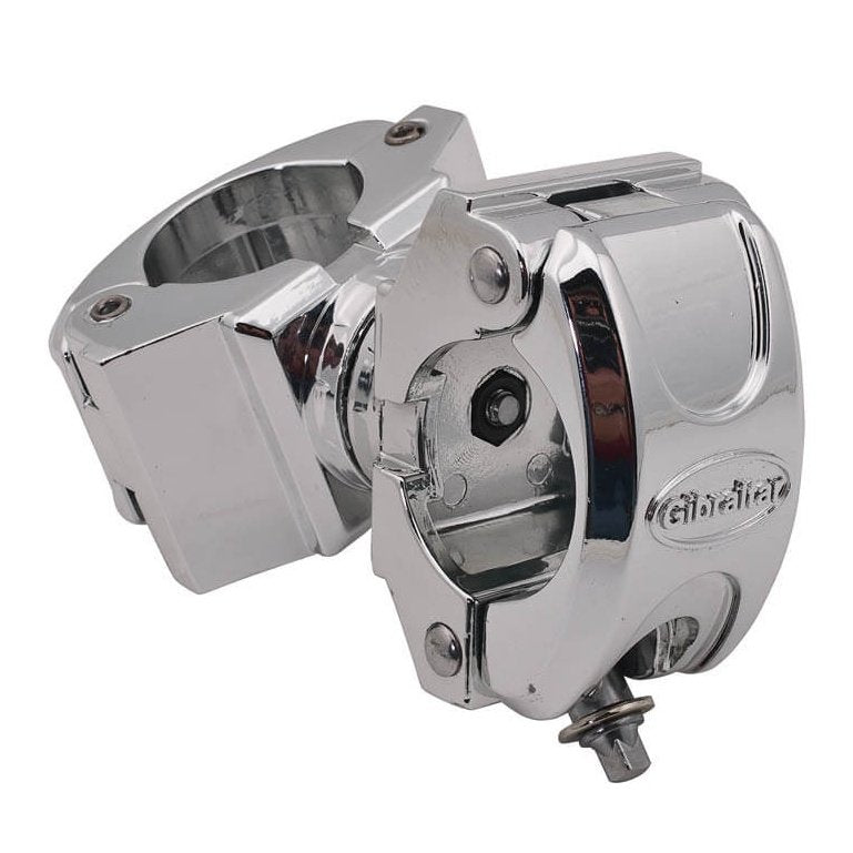 The Gibraltar SC-GCSAR Clamp enables flexible connections between two 1.5" drum rack bars, allowing for adjustable angles up to 360 degrees. Using the Allen key bolt, secure the rack bar grips in place for the perfect angle.