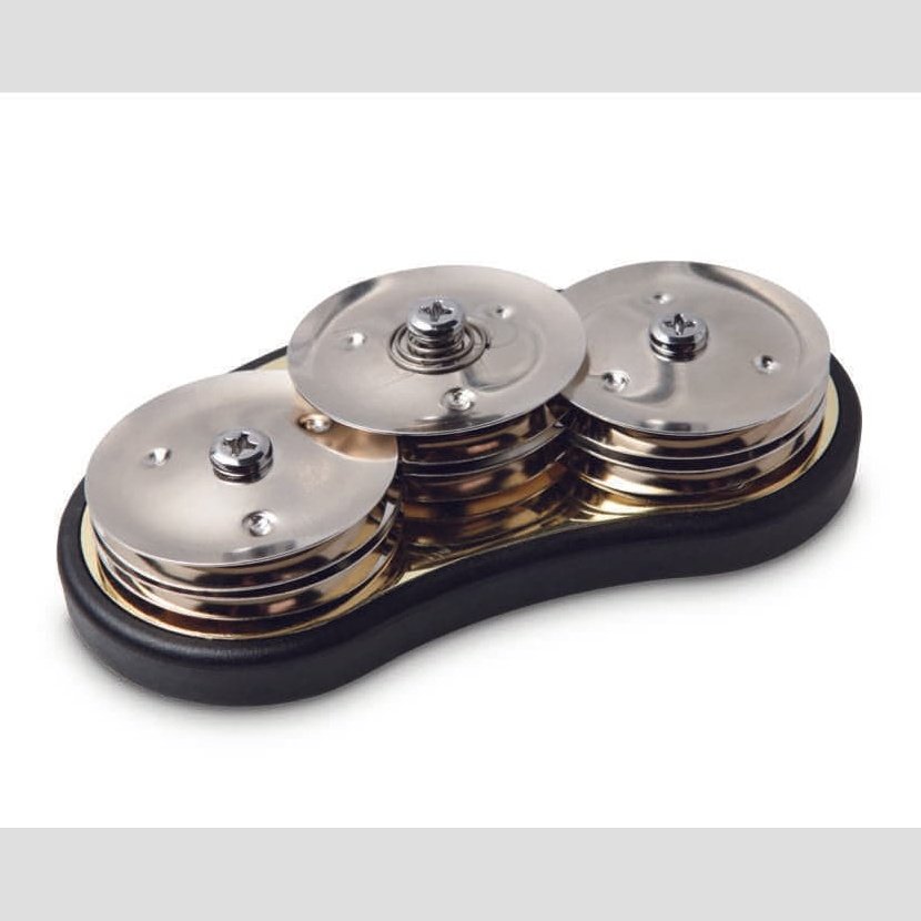 Latin Percussion's Cajon Jingle Click allows you to instantly add a unique, new sound to any cajon. Three sets of LP steel jingles provides a great LP tambourine sound. The Velcro back mounted to an ergonomically shaped base securely attaches directly to any cajon or the LP Cajon Saddle (LP-CJS).