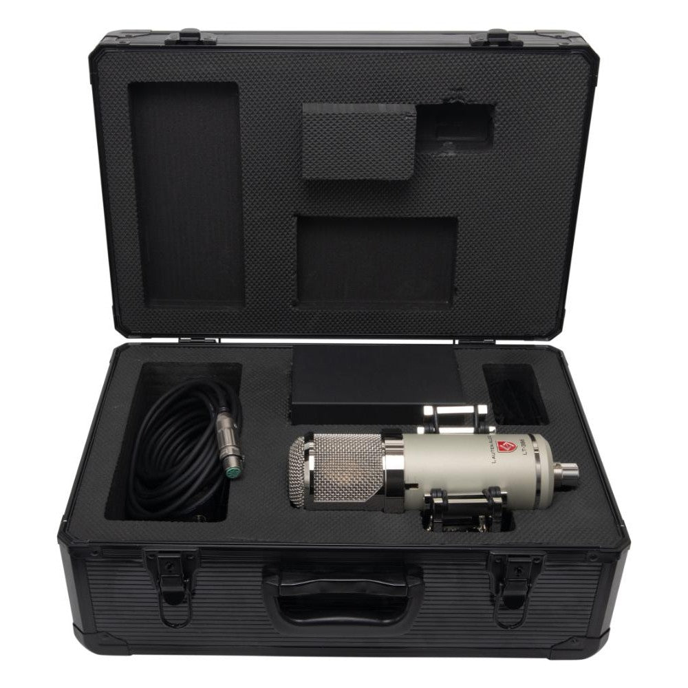 Ultra-large diaphragm vacuum tube vocal microphone. Ships in a flight case with premium suspension mount, 7-pin permium tube mic cable, and power supply. Designed and built in Silicon Valley, California.
