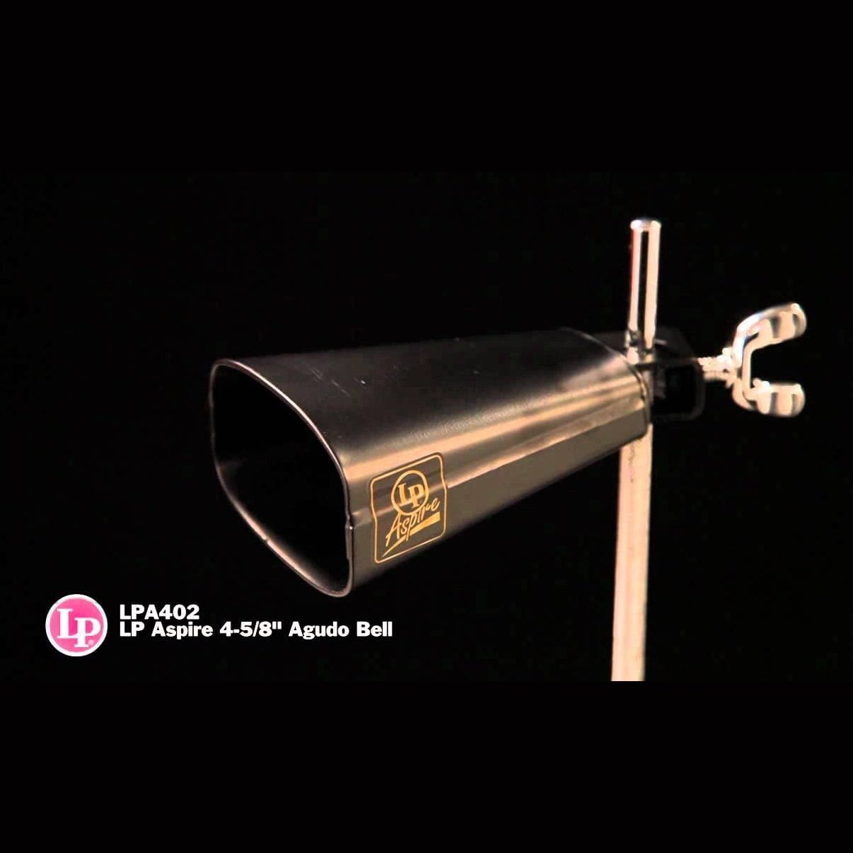 The LP Aspire Agudo Bell is a compact cowbell with bright overtones. The mounting mechanism accommodates rods up to 3/8".