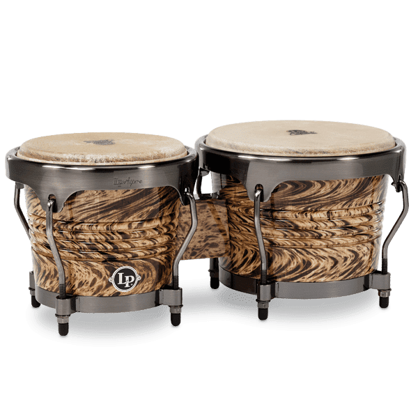This LP Aspire Havana Cafe wood bongo set features a specialized process allowing for a modestly priced set of bongos in a truly unique finish. The 6-3/4 and 8 drums in this set are made from Siam Oak and come with Brushed Nickel hardware. They are outfitted with rawhide heads, EZ Curve⢠rims, 9/32"" diameter tuning lugs and Cuban style bottom rings.