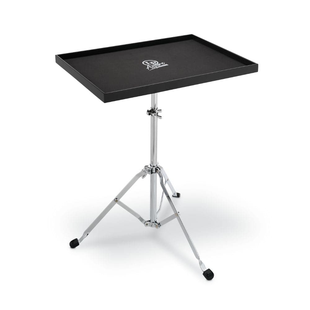 The LP Aspire Trap Table offers a professional solution for keeping your shakers, cowbells, and tambourines securely in place during performances. Its adjustable and chrome-plated stand allows for easy height adjustment, even when loaded with instruments. The 22" x 16" rubber-padded surface can accommodate traditional handheld instruments as well as modern devices like laptops and tablets. Additionally, the raised border prevents maracas and claves from rolling off the table.