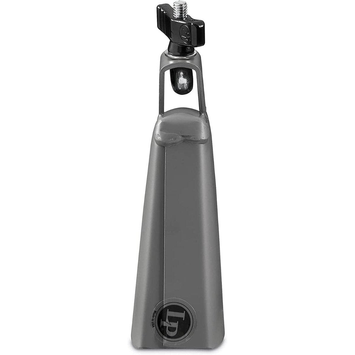 5" Mountable Cowbell in gray finish. This yields a bright sound with a high pitch and controlled overtones. One-piece, seam-welded bell construction ensures this will withstand lots of use on the road! The LP forged eye-bolt assembly grips tightly to any 3/8" diameter rod. Made in the USA!.