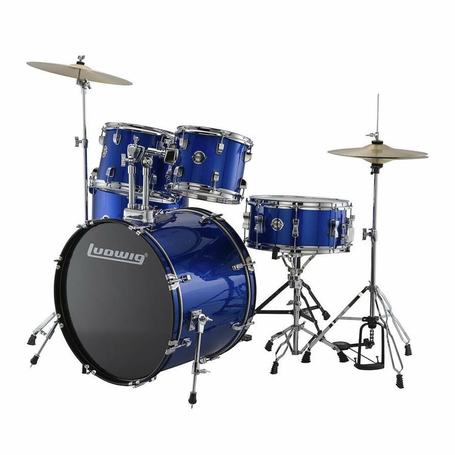 The Drive configuration is a full-sized, totally playable drum set package complete with cymbals, durable hardware, drum throne, and a chain-drive pedal.