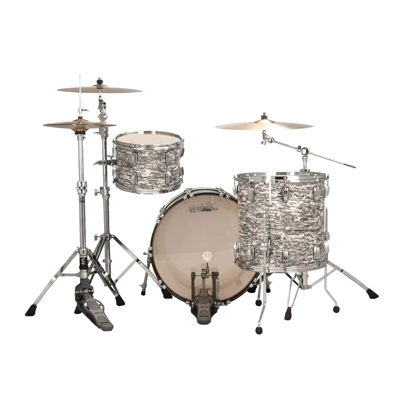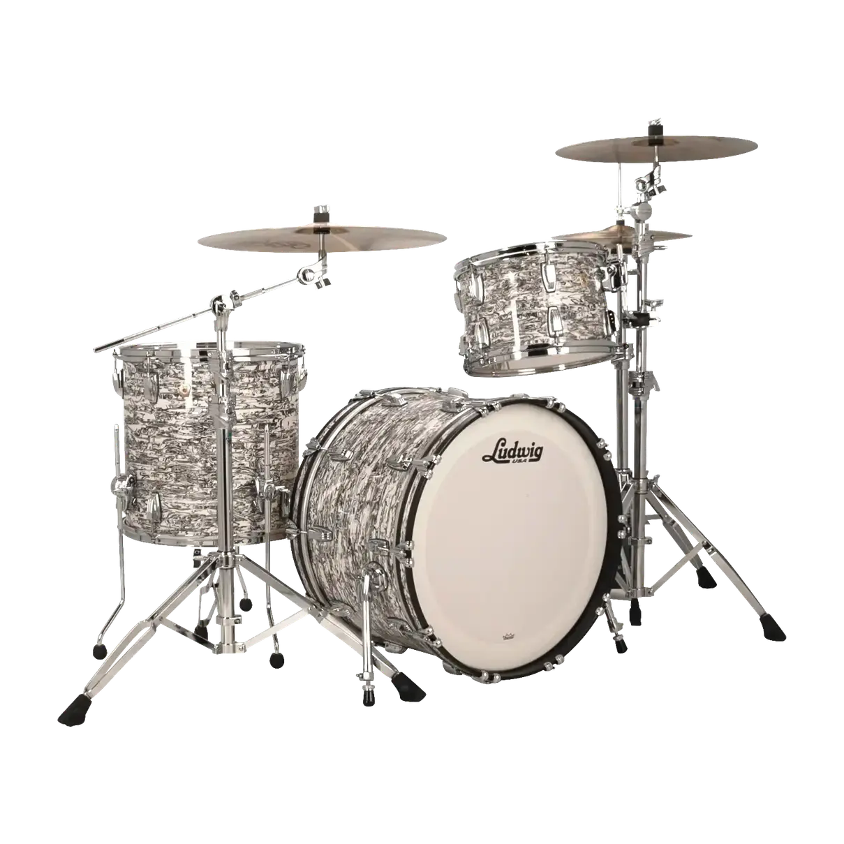 This Ludwig Fab drum set – in limited edition White Abalone – includes a 22x14 bass drum, 13x9 tom, and a 16x16 floor tom. Drums only; hardware/cymbals sold separately.