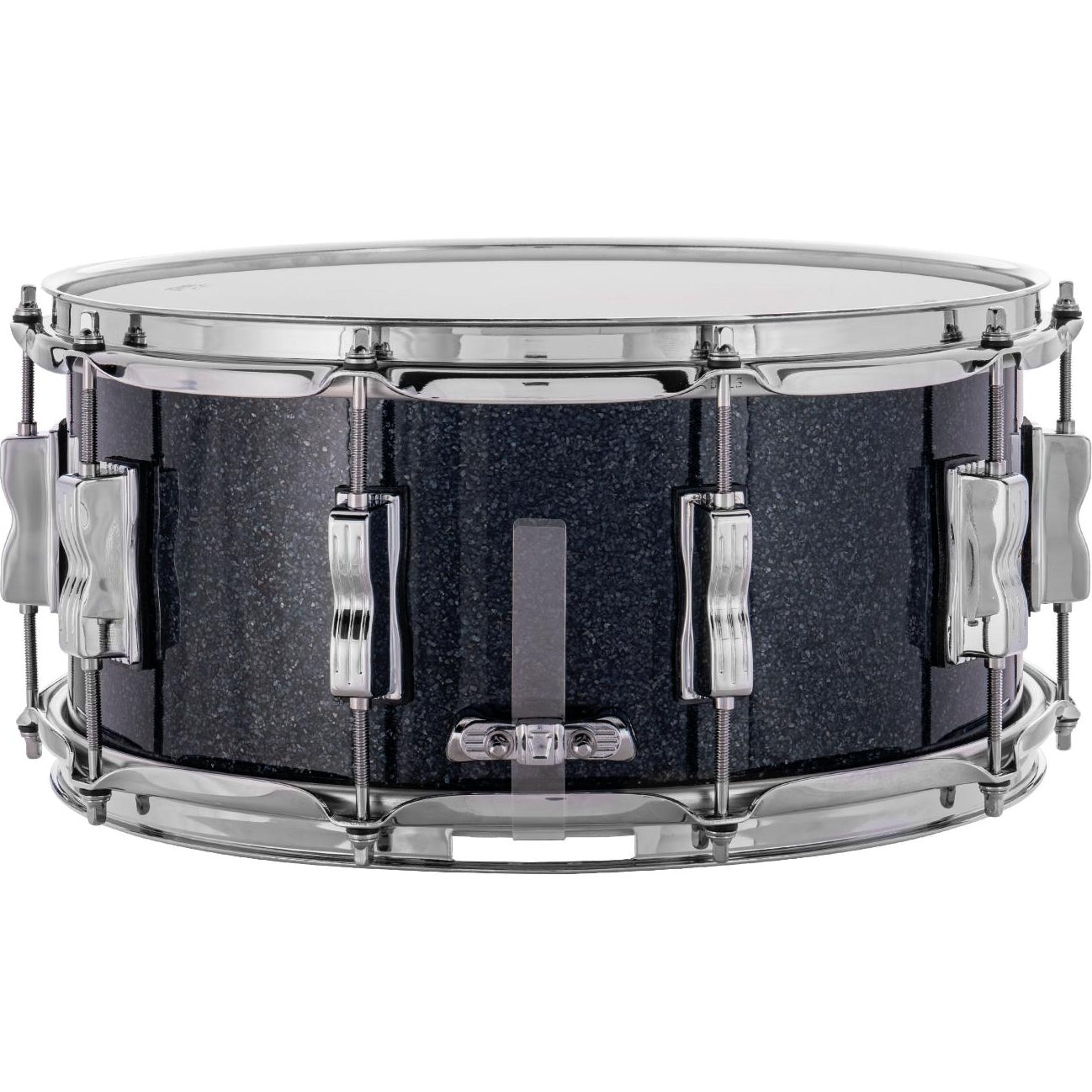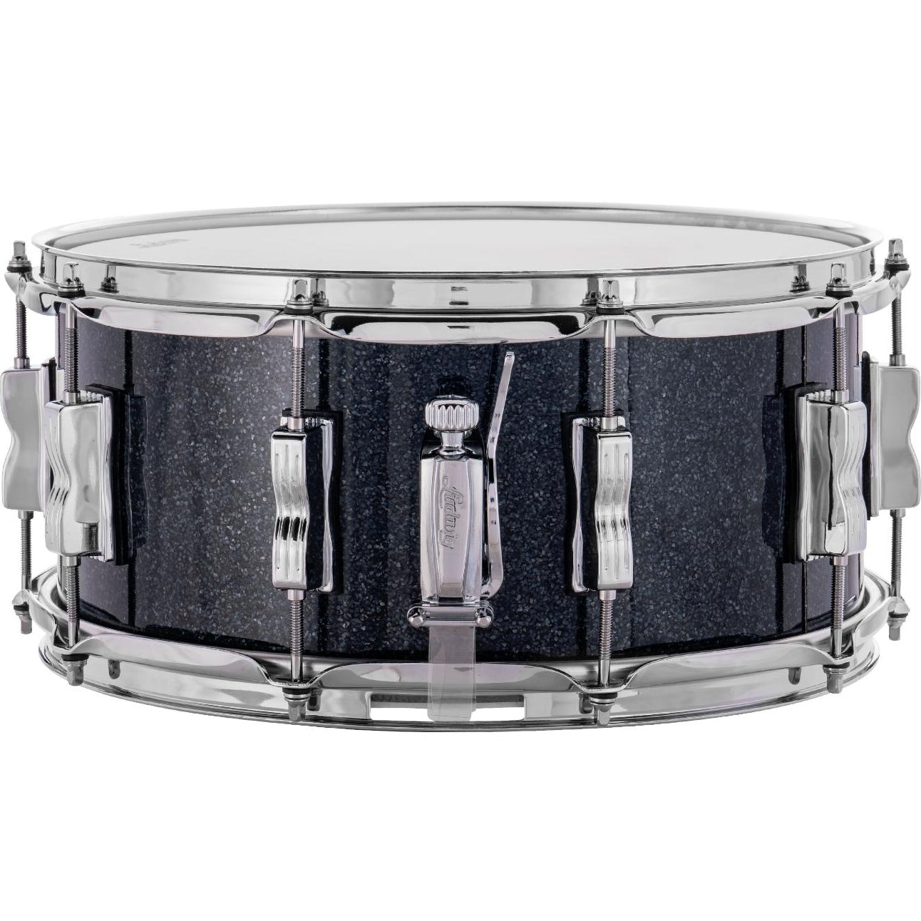 This Ludwig snare drum features a P88 throw-off, P35 snare butt, Classic small twin lugs, triple-flange hoops, 20-strand snare wires, medium coated Ludwig batter head.