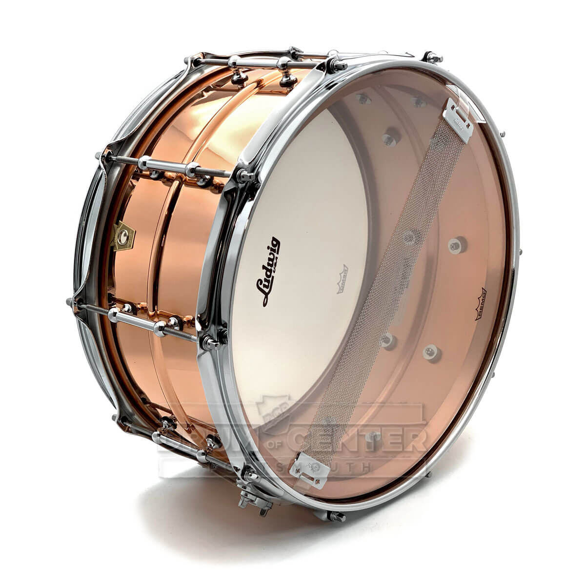 Copper is a precious metal, and this is indeed a precious snare drum! The Ludwig 6.5x14 Copper Phonic snare drum boasts a thick 1.2mm SEAMLESS copper shell adorned with tube lugs and has a lightly lacquered finish. Like the Black Beauty, Supraphonic, and Bronze Phonic, this drum speaks well in a variety of tunings with rich, complex and dark overtones.