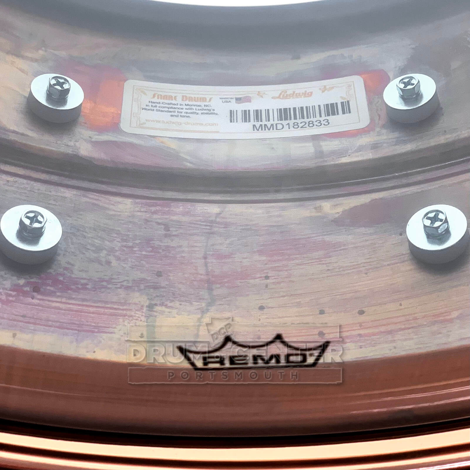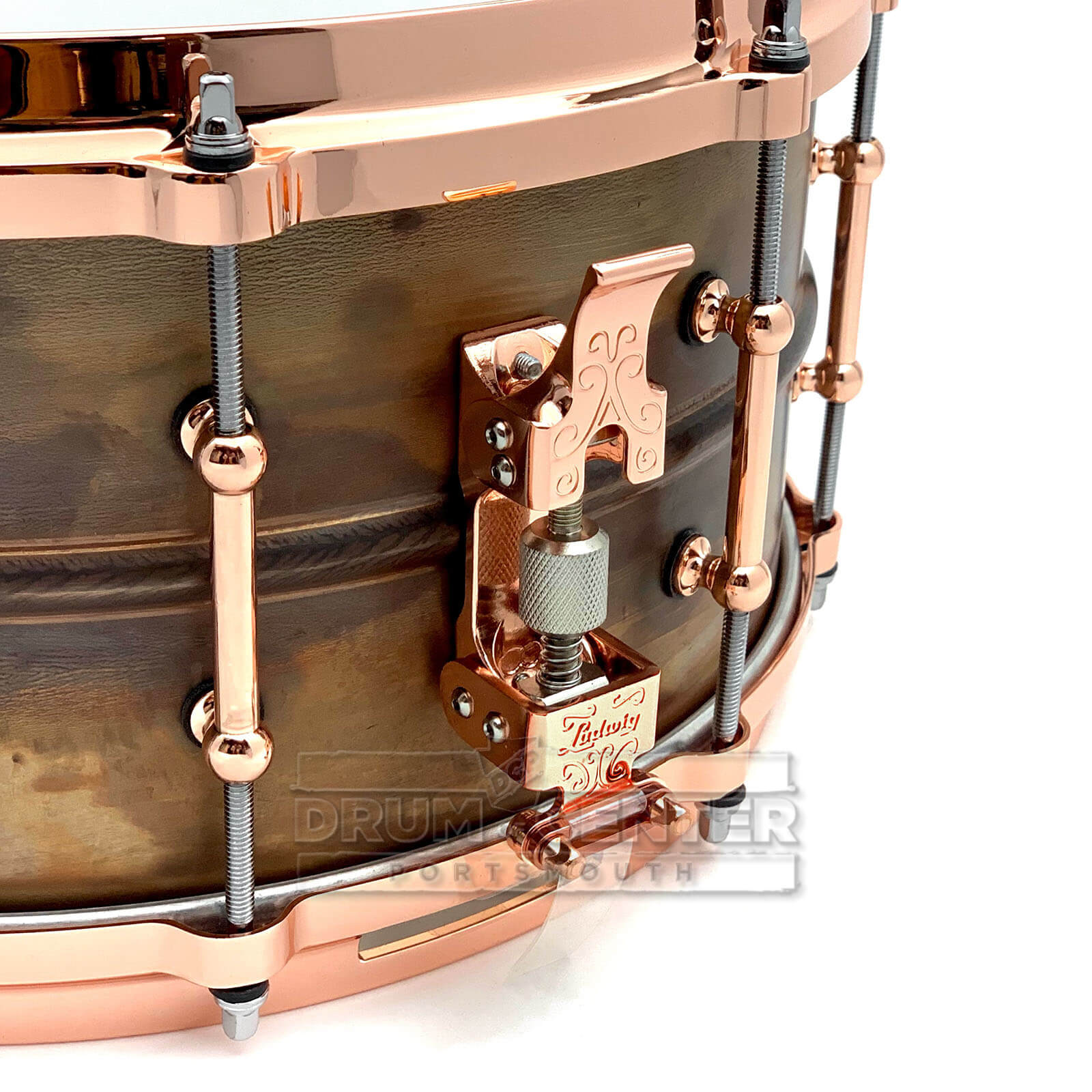 Copper is a precious metal, and this is indeed a precious snare drum! The Ludwig 6.5x14 Copper Phonic snare drum boasts a thick 1.2mm SEAMLESS copper shell adorned with Imperial lugs and has a patina'd dark raw copper finish. Like the Black Beauty, Supraphonic, and Bronze Phonic, this drum speaks well in a variety of tunings with rich, complex and dark overtones. This spectacular shell is topped off with polished, copper-plated hardware: tube lugs, die cast hoops, P86 strainer, P35 butt, and even the Keystone badge all make for an amazing contrast to the raw shell.