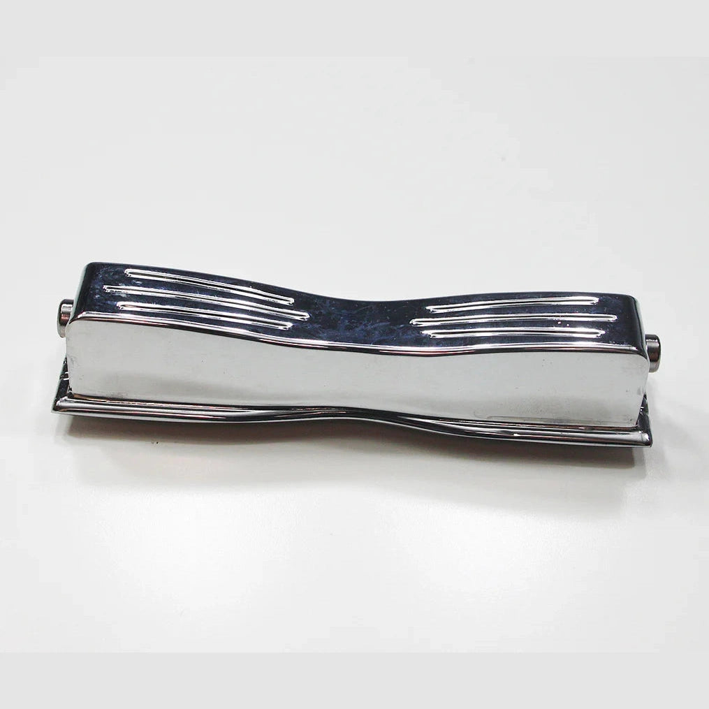Large double-ended "Bowtie" tension lug designed specifically for wooden shell drums. Features flat construction with 3-7/8" center-to-center hole spacing. Complete package includes necessary gasket and mounting hardware for professional installation on Ludwig wood snare drums.