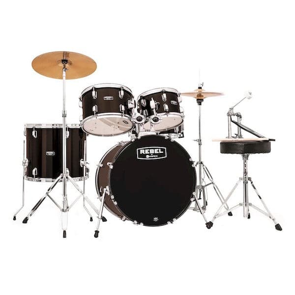 The Rebel by Mapex is designed to make the first experience playing drums one to always remember. The set comes equipped with stands, cymbals, throne, pedals and sticks. The shells are poplar for plenty of tone and the 18” bass drum delivers solid low end punch while keeping the toms at a low height for the youngest of players.