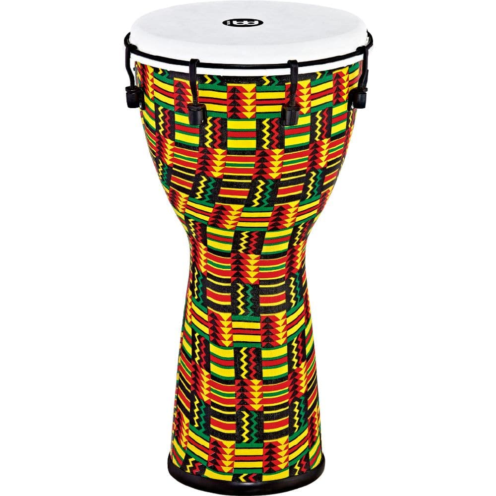 The 10 Meinl Alpine Djembe features an incredibly lightweight yet durable construction that is perfect for travel. Outfitted with a durable synthetic head, the unique body style delivers a wide range of deep bass tones and crisp highs that responds to your touch at all dynamic levels. A sturdy, easy-to-use mechanical tuning system ensures consistent sound regardless of changes in weather, making this drum a great companion for outdoor playing. The striking and eco-friendly finish options complete the djembes refined appearance.