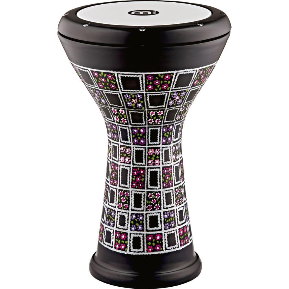 This hand-engraved aluminum doumbek comes in a painted floral design and produces snappy mid east sounds.