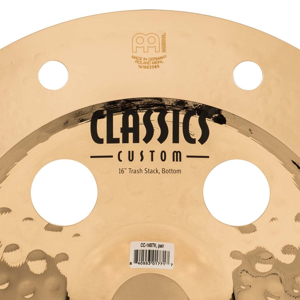 - The Meinl Classics Custom 16" stack consists of a Classics Custom 16" Trash Crash (top cymbal) and a Classics Custom 16" Trash China (bottom cymbal)